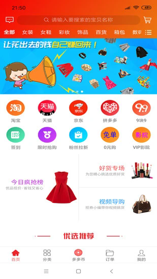 惠多多的亮点在于其省钱省时的双重价值:平台每日更新近万件商品优惠信息,包括外卖、团购、电影票等衣食住行全品类折扣,用户购前领券、购后返现,每月可节省可观开支;另内置智能搜索引擎和分类系统,帮助用户快速定位目标商品或服务,避免信息过载。客服支持全天候在线,提供即时问题解答,确保交易无忧。平台还通过直销模式连接源头工厂,减少中间环节,确保低价和正品保障,为用户创造额外收益机会。