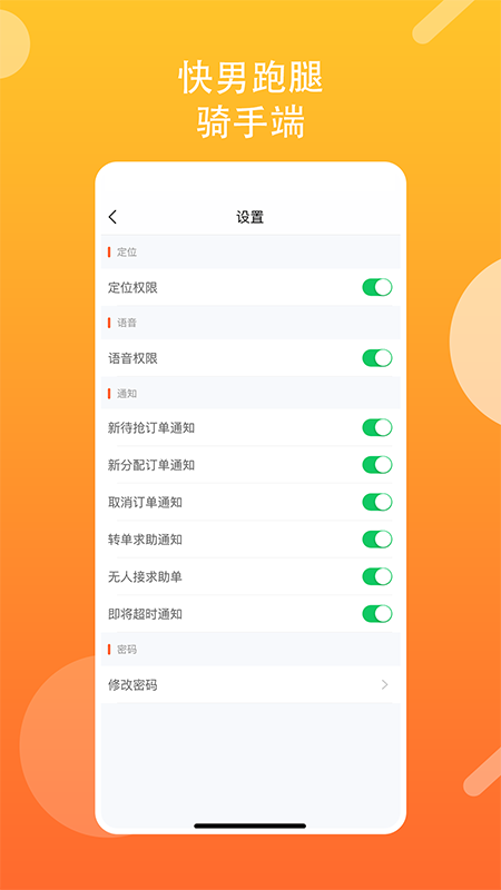 快男跑腿骑手是一款专为骑手打造的高效接单配送软件。它就像是骑手们的得力小助手,能让骑手在配送的道路上更加顺畅。通过这个软件,骑手可以轻松查看附近的订单信息,根据自己的位置和时间自由选择订单,开启高效的配送之旅。软件的操作界面简洁明了,即使是新手骑手也能快速上手,在短时间内熟悉各项功能,开启自己的配送生涯。