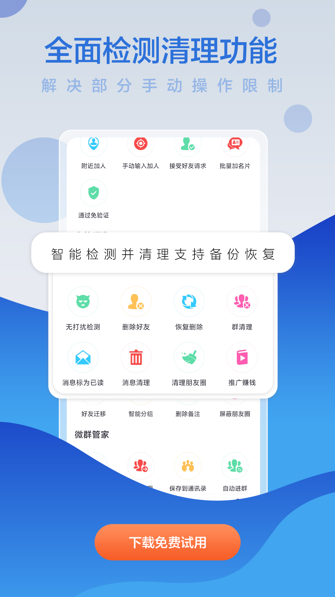 一键加粉与被动加粉功能,结合共享生态的海量微群资源库,能帮助从业者在短时间内获得大量精准的微商人脉资源,快速拓展客源。贴心的僵尸粉检测与清理功能,可在完全不打扰其他好友的前提下,快速识别并清理无效联系人。工具整合了全面的作图与编辑功能,支持图片拼接、添加自定义文字或图片水印,并具备视频去水印与GIF制作能力,满足了微商在内容创作与品牌塑造方面的多样化需求。
