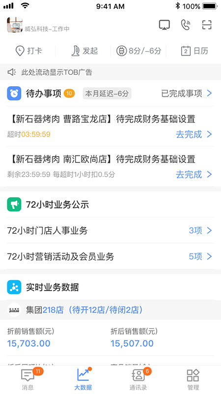 功能全面是其突出优势,几乎涵盖了开店所需的所有环节,从营销活动、会员管理、人事考勤,到财务对账、物流配送、门店盘点,无需在多个应用间切换。操作界面设计得简洁直观,新手也能快速上手,轻松搞定商品录入、活动配置等操作。系统运行稳定,支持大规模数据处理,无论是在手机还是电脑上使用,数据都能实时同步,让你在外出时也能随时处理审批、查看报表。经营数据看板让你对门店的营业额、订单数和客流量一目了然,而多维度的财务报表自动生成,如毛利分析、成本核算等,为经营决策提供了扎实的数据支撑。活动营销配置也很轻松,优惠券、满减、团购和积分等系统都齐全,一键即可设置。