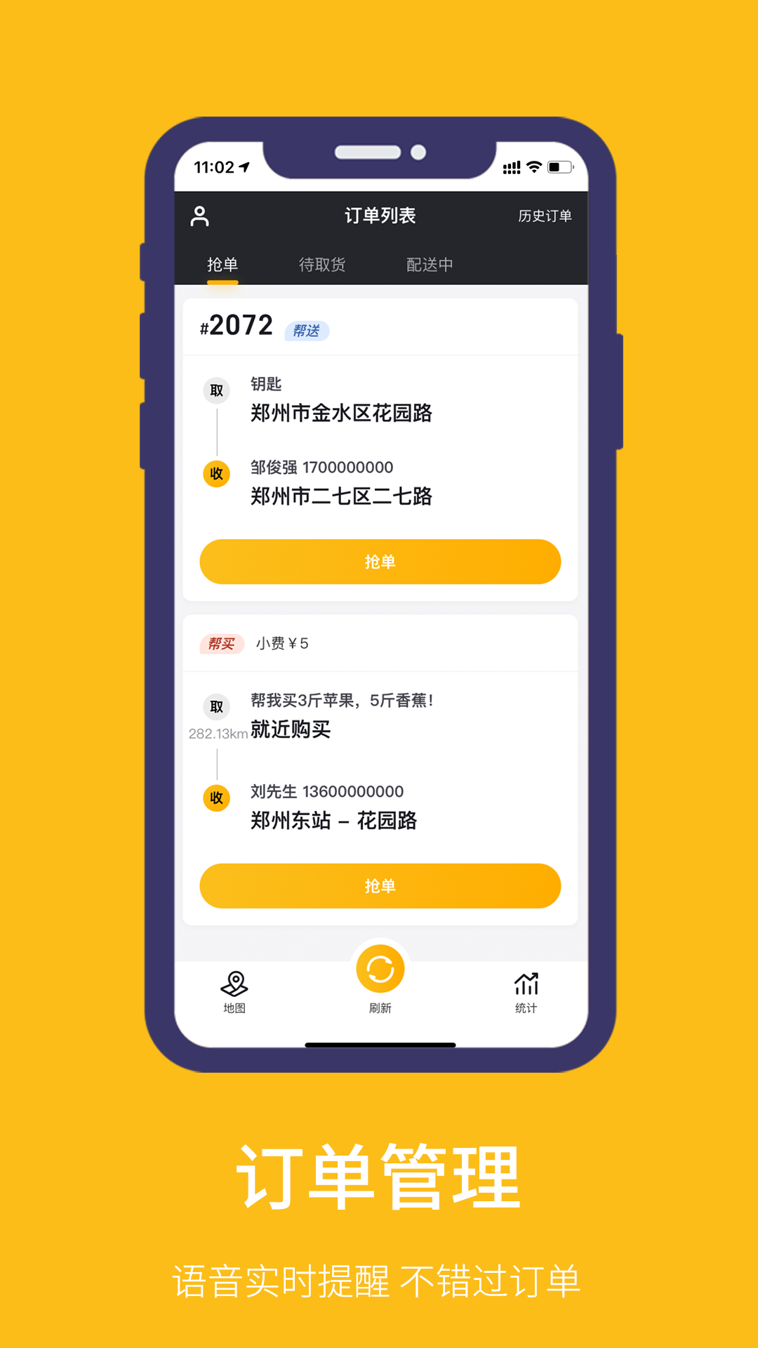 骑手打开软件后,能在首页清晰看到附近的订单信息,包括订单的取货地址、送货地址、商品信息以及预计配送时间等。骑手可以根据自身位置和当前工作状态,自由选择接单。接单后,软件会自动规划最优配送路线,提供详细的导航指引,帮助骑手节省时间和精力。软件还支持实时定位,商家和消费者可以随时查看订单的配送进度,增加配送过程的透明度。软件还具备订单管理功能,骑手可以对已接订单、待取订单、已完成订单等进行分类管理,方便查询和统计自己的工作情况。