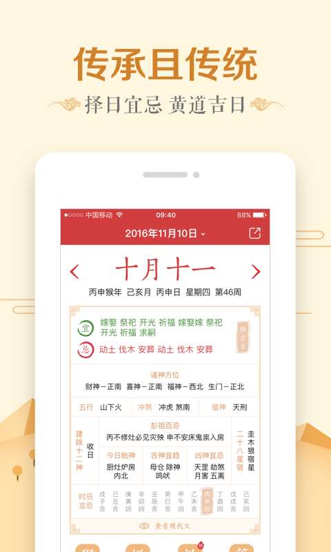 它的功能丰富、操作方便、界面美观,而且还融入了很多传统文化元素,具有很高的使用价值和文化价值。它能够帮助你更好地管理时间,安排日程,同时让你了解更多的传统文化知识。无论是对于普通用户还是对传统文化感兴趣的人来说,都是一个不错的选择。它就像一个忠实的伙伴,陪伴你度过每一天,为你的生活增添便利和色彩。相信你在使用一段时间后,会对它爱不释手,成为你生活中不可或缺的一部分。