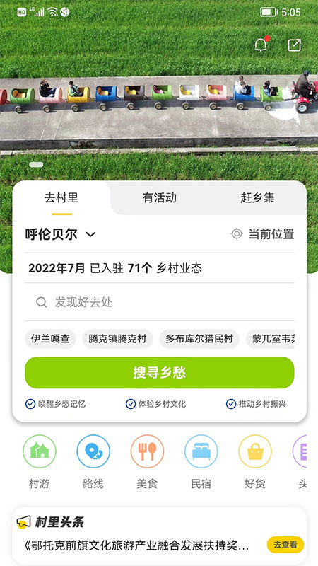 去村里是一款专注于乡村生活与旅游体验的综合服务软件。它致力于搭建城市与乡村之间的桥梁,为用户提供便捷、全面的乡村相关信息与服务。无论是想要体验乡村田园风光的游客,还是寻求乡村特色产品的消费者,亦或是对乡村文化感兴趣的爱好者,都能在这款软件上找到满足自身需求的内容。软件整合了丰富的乡村资源,涵盖乡村旅游景点、农家乐、民宿、农产品等多个领域,让用户可以一站式获取乡村的各种信息。